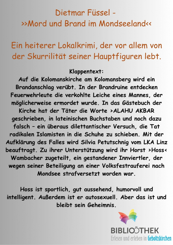 Lesung mit Dietmar Füssl - "Mord und Brand im Mondseeland"